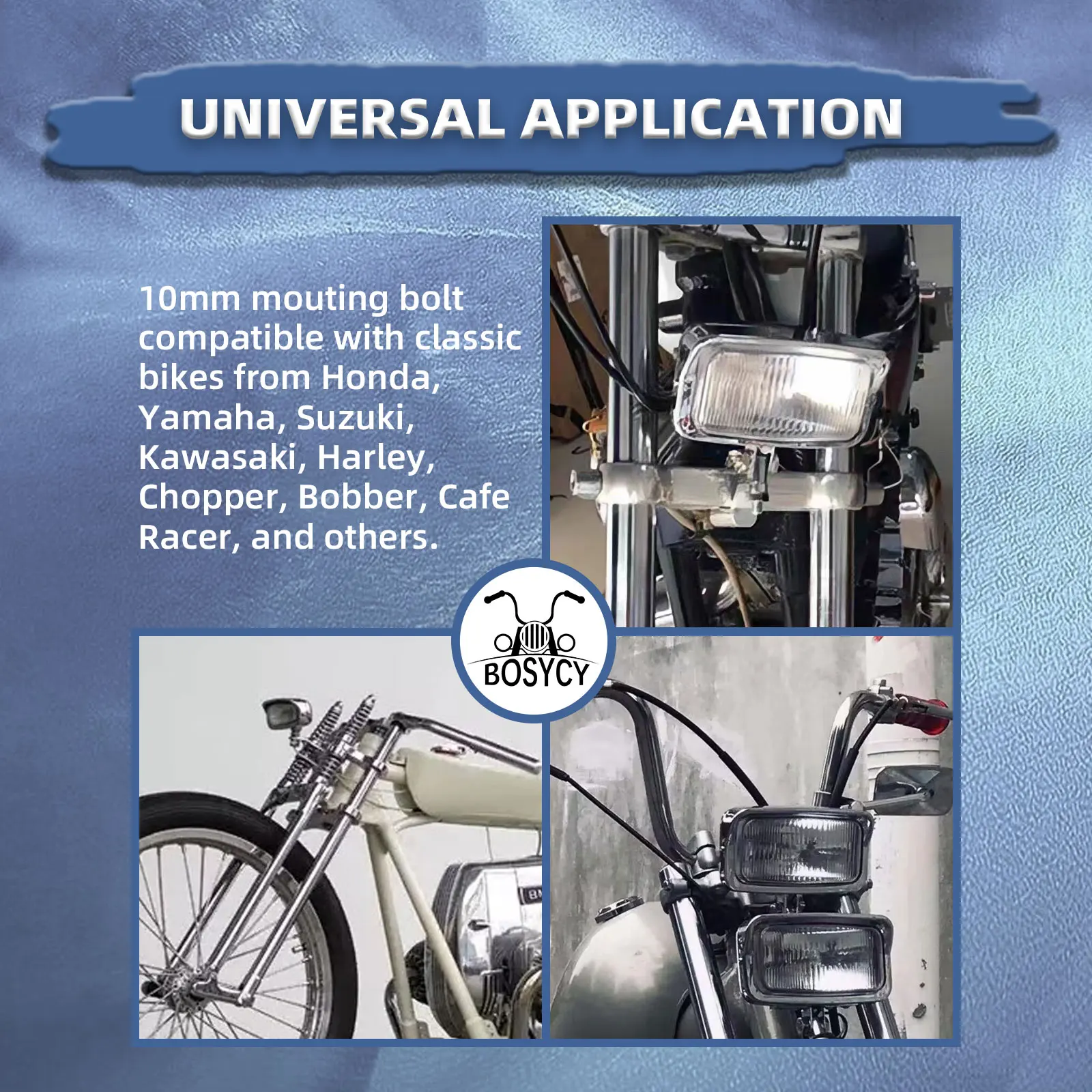 【Upgraded LED Spotlight】Featuring durable built-in LED lights, BOSYCY retro motorcycle headlight is brighter than standard H3 halogen bulbs, improving riding safety and making your rides more enjoyable.