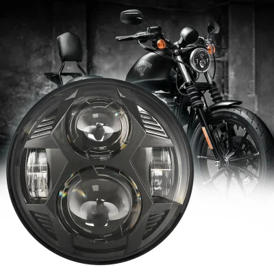 Motorcycle Modified LED Double Eye Headlights Round Motor Electroplate Retro Cafe Racer Angel Eye Headlamp
